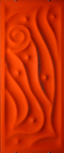Anaranjado is Spanish for Orange. And after making this piece I have a greater respect for the color orange. Burnt orange to be exact. This was a color that I had to mix since it's not readily available in automotive enamel. Oy, one drop of the wrong color and you get a sick tan flesh color. One drop the other way and your into the reds. Very tricky. And it's also very dependent on the light you're shining on it. But when you get it right it rocks. Laylon at the Vault Gallery in Cambria thinks this is my best work. It did come out quite nicely, if I may say so myself.