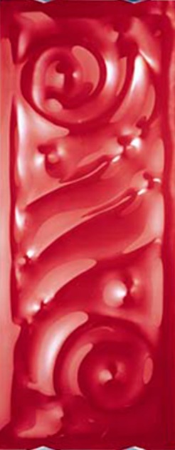 Each panel is made from a monolithic sheet of 0.25" (6-mm) thick architectural glass which has been shaped in a furnace at very high temperatures. Contour depth of a panel can be as much as 1.5" (30-mm). Colors can be automotive enamels or fired-on enamels.