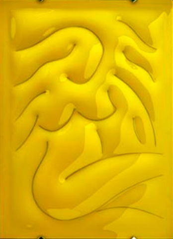 All the lines are hand pinstriped using automotive enamel. In this case lavender on chrome yellow.